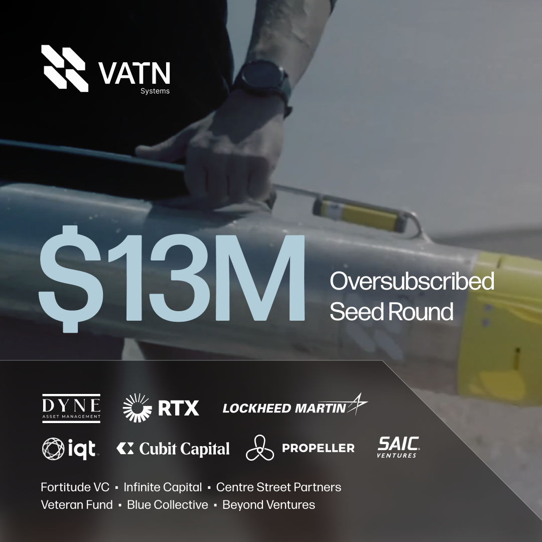 PORTSMOUTH, R.I., Nov. 12, 2024 /PRNewswire/ -- Vatn Systems, a leading defense technology company building autonomous underwater vehicles for the US military and allies, today announced it has raised an oversubscribed $13 million seed round, bringing total funding to $16.5M. The round was led by DYNE Ventures with participation from Lockheed Martin Ventures, RTX Ventures, In-Q-Tel (IQT), Propeller Ventures, SAIC Ventures, Cubit Capital, Fortitude Ventures and existing investors that include Centre Street Partners, The Veteran Fund, Blue Collective, and Decisive Point.